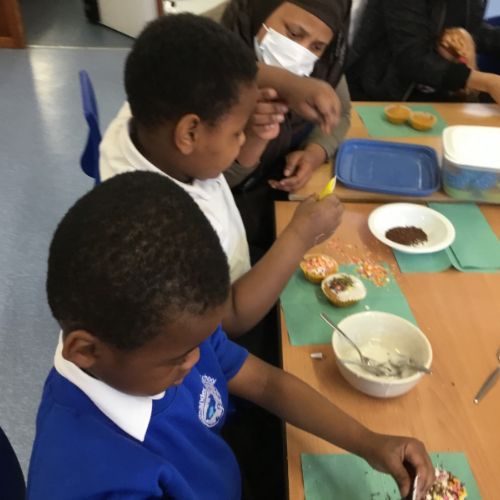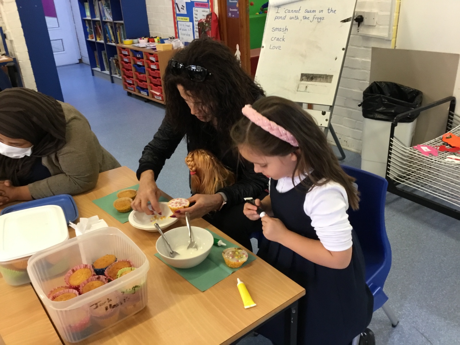 On Friday, we were very lucky to have our mothers or female relatives come into school to spend some time with us. We had lots of lovely activities to complete with them including decorating our very yummy cakes and making them a special crown. We loved spending time with our family and were very proud to show them our amazing learning in our classroom!